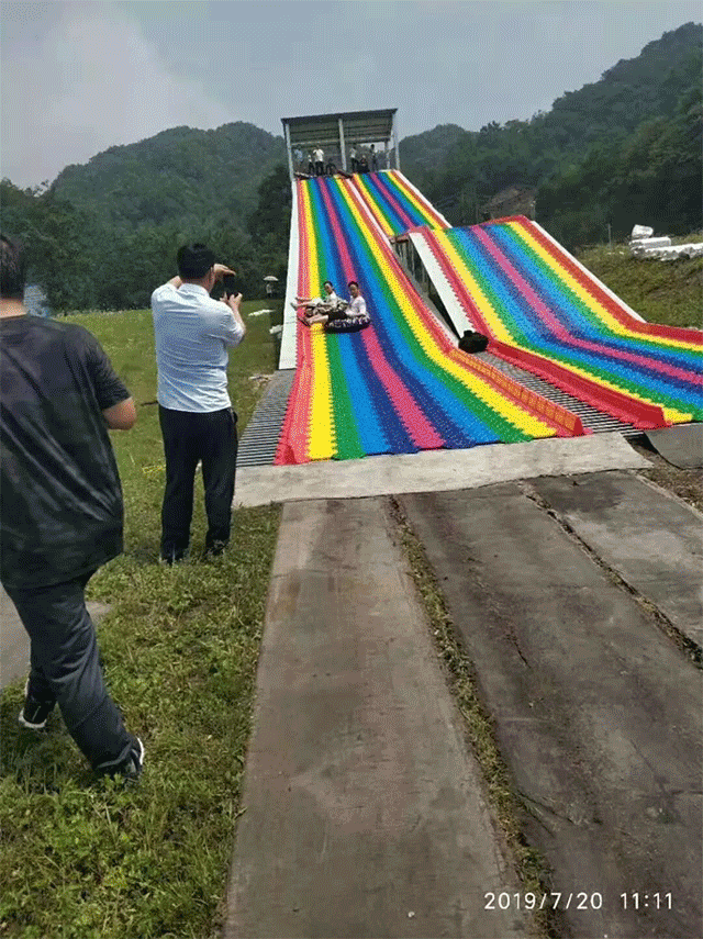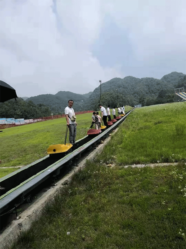 滑雪場飛拉達攀巖架一期安裝完畢,七彩滑道安裝沖坡道安裝完成,扭扭車場地、設備、設施已完成,滑草麾毯維修、維護完成,鋼構亮化安裝、調試結束。多條彩色滑道穿梭于如茵綠草間,讓游客在如畫的風景中享受極限滑草的樂趣。